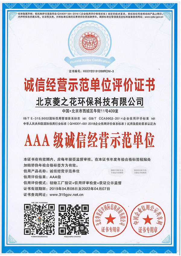• 誠信經營示范單位評價證書