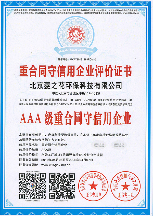 • 重合同守信用企業評價證書